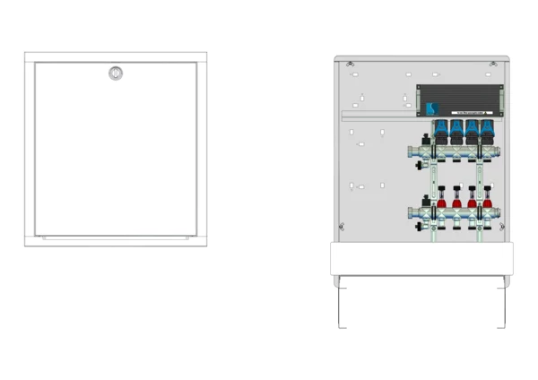 strawa Comfort Anschlussstation FBH-18-X-C69-EGO 4 Hkr.,BxHxT: 600x775x122 mm, ohne Anschlussgarnitur, Verteiler mit DFA min/max + THV, mit vorm. EGO-Regelantrieben u. Klemmleiste mit Vorverdraht., Comfort-UP-Schrank mit Frontbl. in RAL 9016
