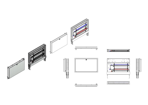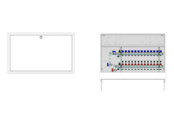 strawa Comfort Anschlussstation FBH-63-V-WMZ-C69 13 Hkr.,BxHxT: 1050x775x122 mm, vert. AG. m. WMZ, Verteiler mit DFA 0-3 l/min + THV M30x1,5, Comfort-UP-Schrank mit Frontblende in RAL 9016