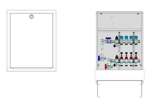 strawa Comfort Anschlussstation FBH-18-V-WMZ-C69 4 Hkr.,BxHxT: 513x775x122 mm, vert. AG. m. WMZ, Verteiler mit DFA min/max + THV für EGO-Aufnahme, Comfort-UP-Schrank mit Frontblende in RAL 9016
