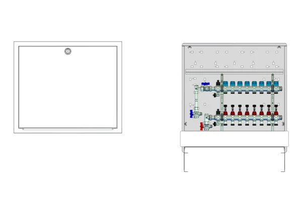 strawa Comfort Anschlussstation FBH-18-V-WMZ-C69 8 Hkr.,BxHxT: 748x775x122 mm, vert. AG. m. WMZ, Verteiler mit DFA min/max + THV für EGO-Aufnahme, Comfort-UP-Schrank mit Frontblende in RAL 9016