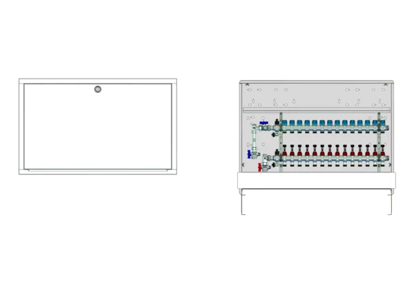 strawa Comfort Anschlussstation FBH-18-V-WMZ-C69 14 Hkr.,BxHxT: 1050 x 775 x 122 mm, vert. AG. m. WMZ, Verteiler mit DFA min/max + THV für EGO-Aufnahme, Comfort-UP-Schrank mit Frontblende in RAL 9016