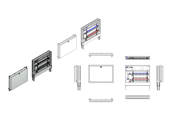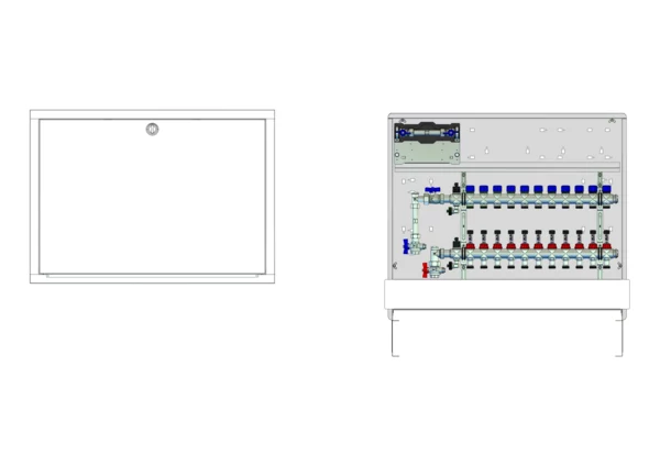 strawa Comfort Anschlussstation FBH-63-V-W1-WMZ-C69 11 Hkr.,BxHxT: 900x775x122 mm, vert. AG. m. WMZ, Verteiler m. DFA 0-3 l/min + THV M30x1,5, Wasserzählerstr. TW kalt, CUP-Schrank m. Frontbl. in RAL 9016