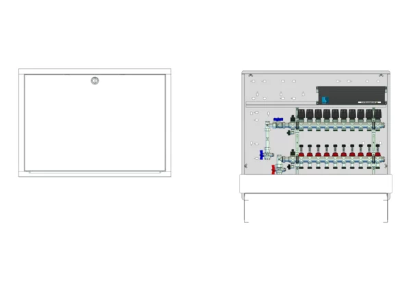 strawa Comfort Anschlussstation FBH-63-V-WMZ-C69-E 10 Hkr.,BxHxT: 900 x 775 x 122 mm, vert. AG. m. WMZ, Verteiler mit DFA 0-3 l/min + THV M30x1,5, vorm. Stellantr.+Klemml. m. Vorverdraht., Comfort-UP-Schrank mit Frontblende in RAL 9016