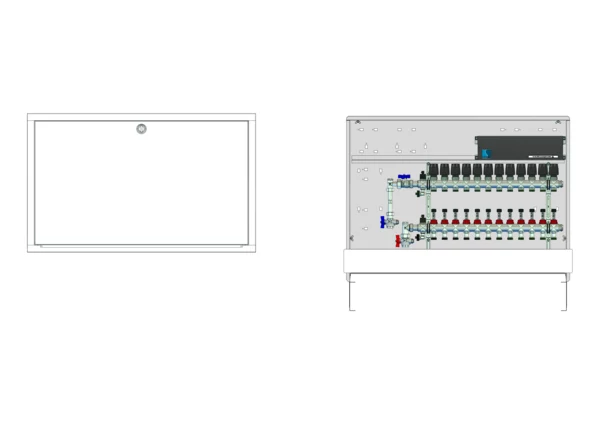 strawa Comfort Anschlussstation FBH-63-V-WMZ-C69-E 12 Hkr.,BxHxT: 1050x775x122 mm, vert. AG. m. WMZ, Verteiler mit DFA 0-3 l/min + THV M30x1,5, vorm. Stellantr.+Klemml. m. Vorverdraht., Comfort-UP-Schrank mit Frontblende in RAL 9016