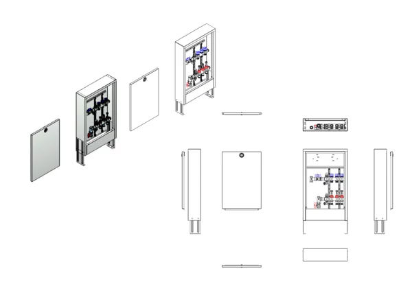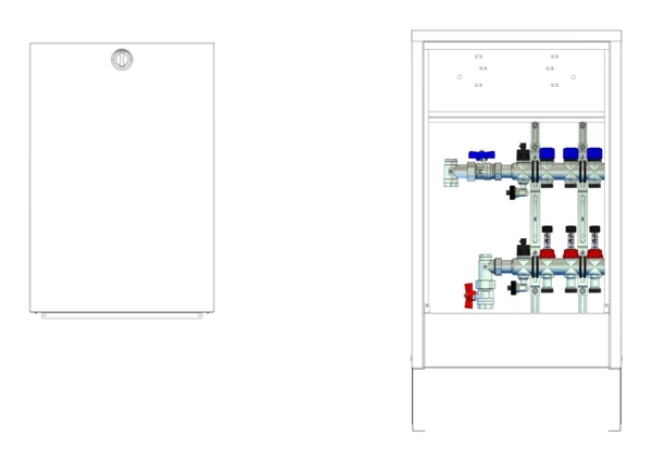 strawa Comfort Anschlussstation FBH-63-V-CA 3 Hkr.,BxHxT: 442x710x125 mm, vert. AG. o. WMZ, Verteiler mit DFA 0-3 l/min + THV M30x1,5, Comfort-AP-Schrank in RAL 9016