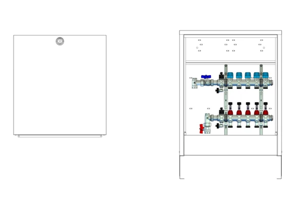 strawa Comfort Anschlussstation FBH-18-V-CA 4 Hkr.,BxHxT: 496 x 710 x 125 mm, vert. AG. o. WMZ, Verteiler mit DFA min/max + THV für EGO, Comfort-AP-Schrank in RAL 9016