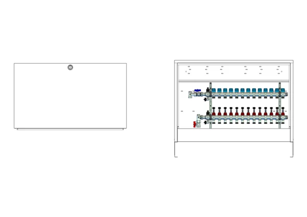 strawa Comfort Anschlussstation FBH-18-V-CA 13 Hkr.,BxHxT: 1032 x 710 x 125 mm, vert. AG. o. WMZ, Verteiler mit DFA min/max + THV für EGO, Comfort-AP-Schrank in RAL 9016