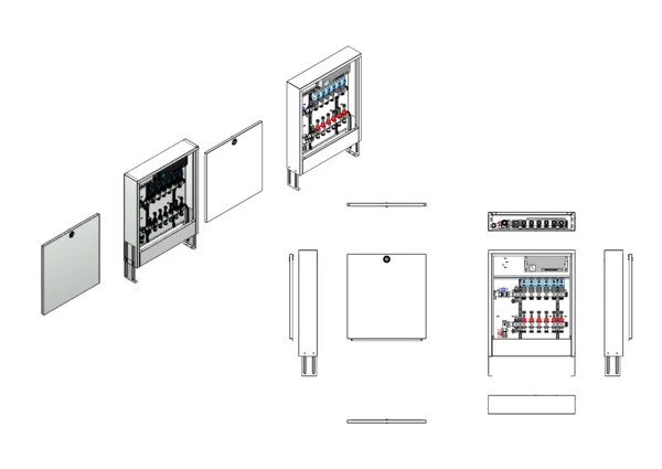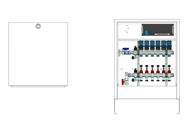 strawa Comfort Anschlussstation FBH-18-V-CA-EGO 6 Hkr.,BxHxT: 582x710x125 mm, vert. AG. o. WMZ, Verteiler mit DFA min/max + THV für EGO, m. vorm. EGO-Regelantr. u. Klemml. mit Vorverdr., Comfort-AP-Schrank in RAL 9016