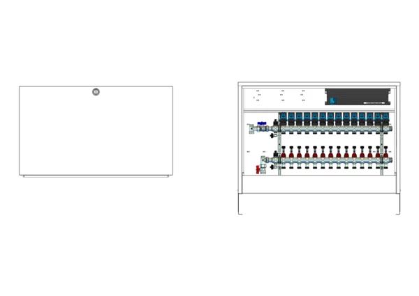 strawa Comfort Anschlussstation FBH-18-V-CA-EGO 14 Hkr.,BxHxT: 1032x710x125 mm, vert. AG. o. WMZ, Verteiler mit DFA min/max + THV für EGO, m. vorm. EGO-Regelantr. u. Klemml. mit Vorverdr., Comfort-AP-Schrank in RAL 9016