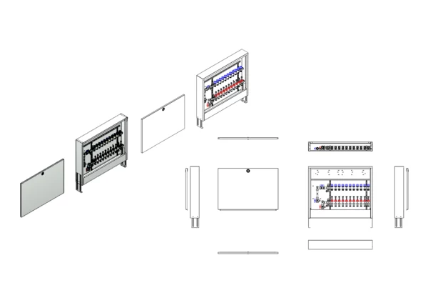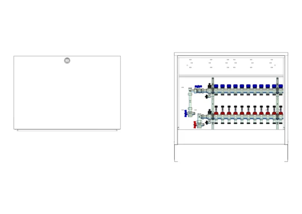 strawa Comfort Anschlussstation FBH-63-V-WMZ-CA 11 Hkr.,BxHxT: 882x710x125 mm, vert. AG. m. WMZ, Verteiler mit DFA 0-3 l/min + THV M30x1,5, Comfort-AP-Schrank in RAL 9016
