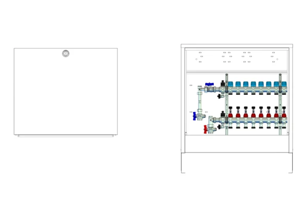 strawa Comfort Anschlussstation FBH-18-V-WMZ-CA 8 Hkr.,BxHxT: 732x710x125 mm, vert. AG. m. WMZ, Verteiler mit DFA min/max + THV für EGO, Comfort-AP-Schrank in RAL 9016