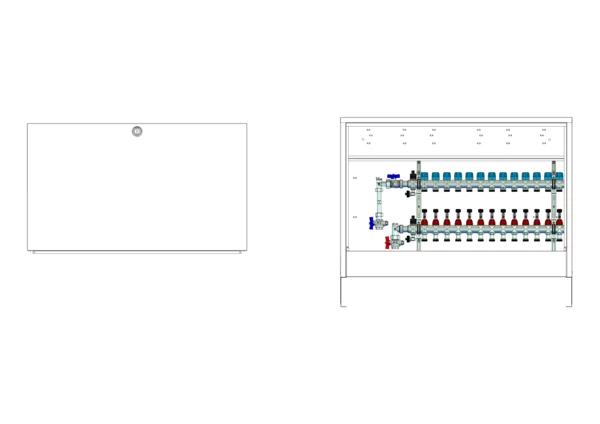 strawa Comfort Anschlussstation FBH-18-V-WMZ-CA 13 Hkr.,BxHxT: 1032 x 710 x 125 mm, vert. AG. m. WMZ, Verteiler mit DFA min/max + THV für EGO, Comfort-AP-Schrank in RAL 9016