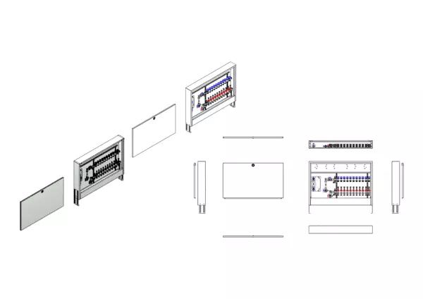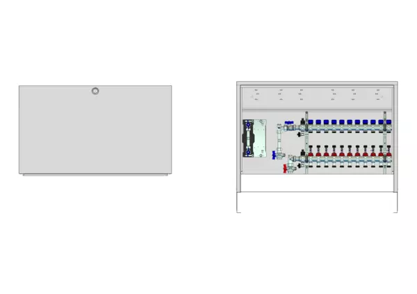 strawa Comfort Anschlussstation FBH-63-V-W1-WMZ-CA 11 Hkr.,BxHxT: 1032x712x125 mm, vert. AG. m. WMZ, Verteiler mit DFA 0-3 l/min + THV M30x1,5, Wasserzählerstr. TW kalt, Comfort-AP-Schrank in RAL 9016