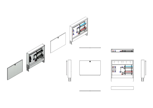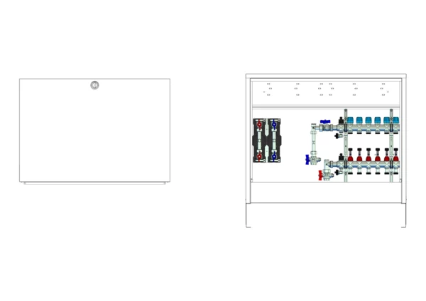 strawa Comfort Anschlussstation FBH-18-V-W2-WMZ-CA 6 Hkr.,BxHxT: 882x710x125 mm, vert. AG. m. WMZ, Verteiler m. DFA min/max + THV für EGO, Wasserzählerstr. TW kalt u. warm, Comfort-AP-Schrank in RAL 9016