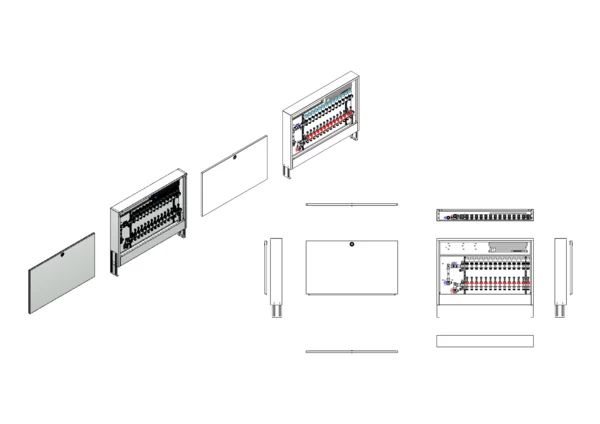 strawa Comfort Anschlussstation FBH-63-V-WMZ-CA-E 14 Hkr.,BxHxT: 1032x710x125 mm, vert. AG. m. WMZ, Verteiler mit DFA 0-3 l/min + THV M30x1,5, vorm. Stellantr. + Klemml. m. Vorverdraht., Comfort-AP-Schrank in RAL 9016