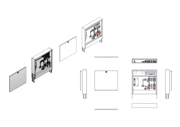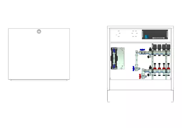 strawa Comfort Anschlussstation FBH-63-V-W1-WMZ-CA-E 4 Hkr.,BxHxT: 732x710x125 mm, vert. AG. m. WMZ, Verteiler mit DFA 0-3 l/min + THV M30x1,5, vorm. Stellantr. + Klemml. m. Vorverdraht., Wasserzählerstr. TW kalt, Comfort-AP-Schrank in RAL 9016