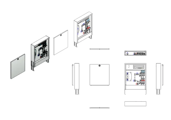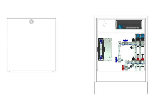 strawa Comfort Anschlussstation FBH-18-V-W1-WMZ-CA-EGO 2 Hkr.,BxHxT: 496x710x125 mm, vert. AG. m. WMZ,Verteiler mit DFA min/max + THV für EGO, m. vorm. EGO-Regelantr. u. Klemml. mit Vorverdr., Wasserzählerstr. TW kalt, Comfort-AP-Schrank in RAL 9016