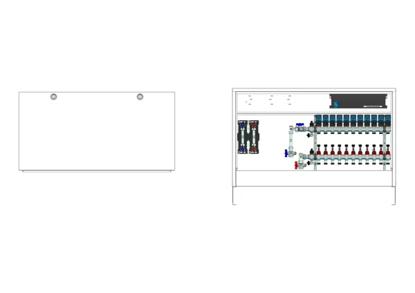 strawa Comfort Anschlussstation FBH-18-V-W2-WMZ-CA-EGO 11 Hkr.,BxHxT: 1182x710x125 mm, vert. AG. m. WMZ, Verteiler m. DFA min/max+THV für EGO, m. vorm. EGO-Regelantr. u. Klemml. m. Vorverdr., Wasserzählerstr. TW kalt u. warm, Comfort-AP-Schrank RAL 9016