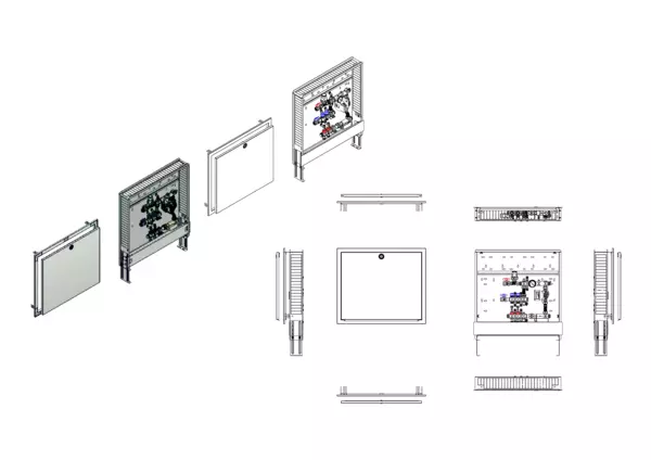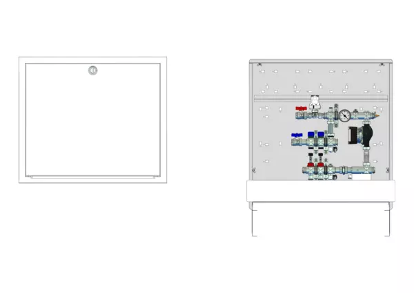 strawa Comfort Regelstation FBR-63-H-C69 2 Hkr.,BxHxT: 750x775x122 mm, Festwert 20-50°C mit Pumpe, horz. AG o. WMZ, Verteiler mit DFA 0-3 l/min + THV M30x1,5, Comfort-UP-Schrank m. Frontbl. RAL 9016