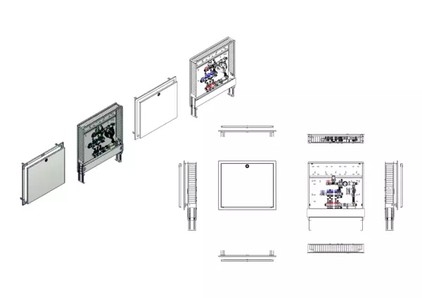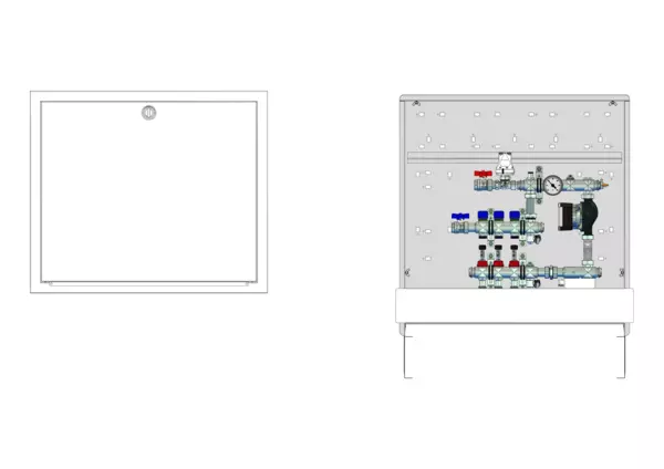strawa Comfort Regelstation FBR-63-H-C69 3 Hkr.,BxHxT: 750x775x122 mm, Festwert 20-50°C mit Pumpe, horz. AG o. WMZ, Verteiler mit DFA 0-3 l/min + THV M30x1,5, Comfort-UP-Schrank m. Frontbl. RAL 9016