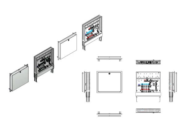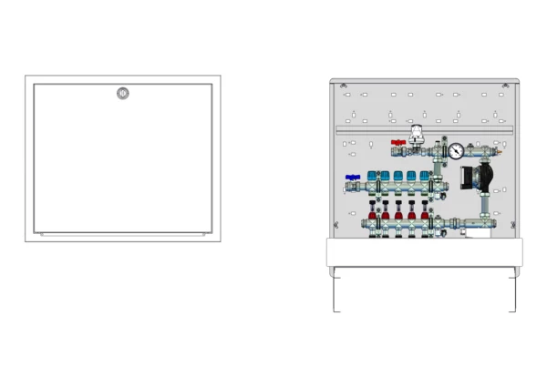 strawa Comfort Regelstation FBR-18-H-C69 5 Hkr.,BxHxT: 750x775x122 mm, Festwert 20-50°C mit Pumpe, horz. AG o. WMZ, Verteiler m. DFA min/max + THV für EGO, Comfort-UP-Schrank m. Frontbl. RAL 9016