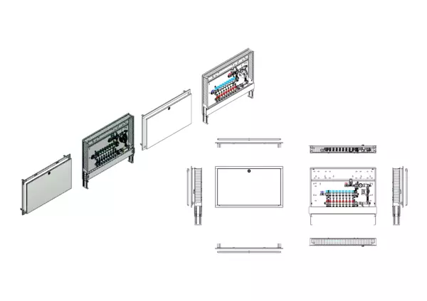 strawa Comfort Regelstation FBR-18-H-C69 9 Hkr.,BxHxT: 1050x775x122 mm, Festwert 20-50°C mit Pumpe, horz. AG o. WMZ, Verteiler m. DFA min/max + THV für EGO, Comfort-UP-Schrank m. Frontbl. RAL 9016