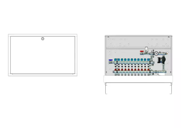 strawa Comfort Regelstation FBR-18-H-C69 11 Hkr.,BxHxT: 1050x775x122 mm, Festwert 20-50°C mit Pumpe, horz. AG o. WMZ, Verteiler m. DFA min/max + THV für EGO, Comfort-UP-Schrank m. Frontbl. RAL 9016