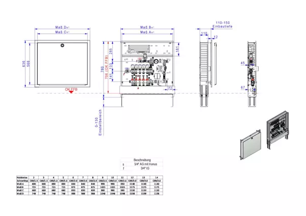 strawa Comfort Regelstation FBR-63-H-C69-E 14 Hkr.,BxHxT: 1200 x 775 x 122 mm, Festwert 20-50°C mit Pumpe, horz. AG o. WMZ, Verteiler mit DFA 0-3 l/min + THV M30x1,5, vorm. Stellantr. + Klemml. m. Vorverdraht., Comfort-UP-Schrank m. Frontbl. RAL 9016