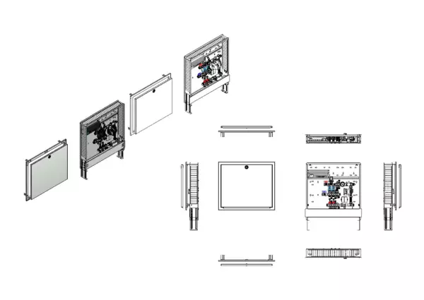Die Regelstation für Flächenheizung ist mit einer Festwertregelung 20-50 °C ausgestattet. Die im Unterputzschrank montierte Regelgruppe umfasst eine Umwälzpumpe, einen Edelstahlverteiler mit absperrbaren Durchflussanzeigern und Ventileinsätzen für EGO-Schnellverschluss, sowie eine horizontale Anschlussgarnitur ohne Wärmezählerverrohrung. Die vormontierten und verdrahteten EGO-Regelantriebe sind auf einer montierten Klemmleiste installiert.