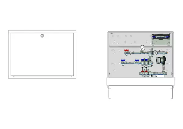 strawa Comfort Regelstation FBR-63-H-W1-WMZ-C69 2 Hkr.,BxHxT: 900x775x122 mm, Festwert 20-50°C mit Pumpe, horz. AG m. WMZ, Verteiler mit DFA 0-3 l/min + THV M30x1,5, Wasserzählerstr. TW kalt, Comfort-UP-Schrank m. Frontbl. RAL 9016
