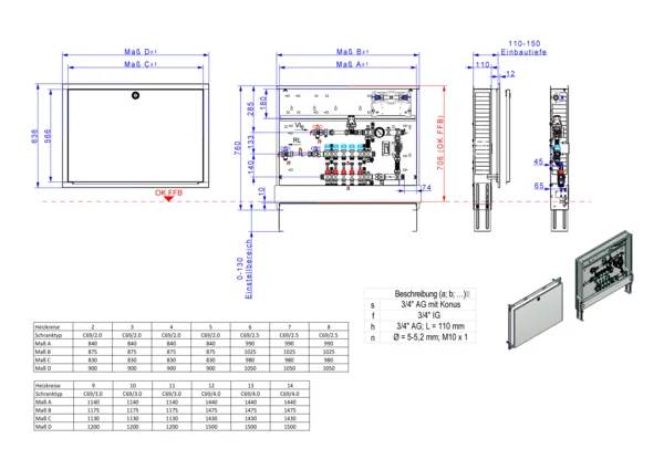 strawa Comfort Regelstation FBR-18-H-W1-WMZ-C69 12 Hkr.,BxHxT: 1500 x 775 x 122 mm, Festwert 20-50°C mit Pumpe, horz. AG m. WMZ, Verteiler m. DFA min/max + THV für EGO, Wasserzählerstr. TW kalt, Comfort-UP-Schrank m. Frontbl. RAL 9016