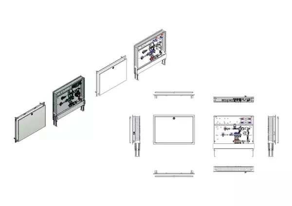 strawa Comfort Regelstation FBR-63-H-W2-WMZ-C69 2 Hkr.,BxHxT: 900x775x122 mm, Festwert 20-50°C mit Pumpe, horz. AG m. WMZ, Verteiler mit DFA 0-3 l/min + THV M30x1,5, Wasserzählerstr. TW kalt u. warm, Comfort-UP-Schrank m. Frontbl. RAL 9016
