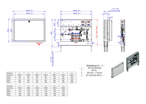 strawa Comfort Regelstation FBR-63-H-W2-WMZ-C69 7 Hkr.,BxHxT: 1050 x 775 x 122 mm, Festwert 20-50°C mit Pumpe, horz. AG m. WMZ, Verteiler mit DFA 0-3 l/min + THV M30x1,5, Wasserzählerstr. TW kalt u. warm, Comfort-UP-Schrank m. Frontbl. RAL 9016