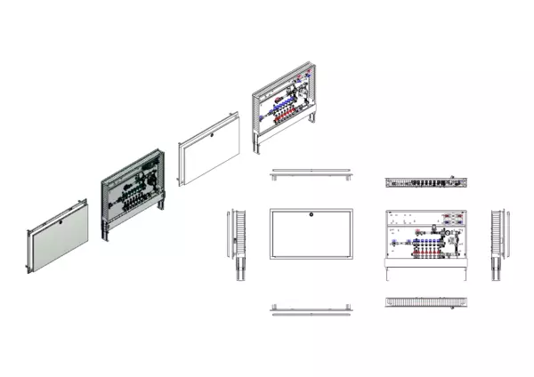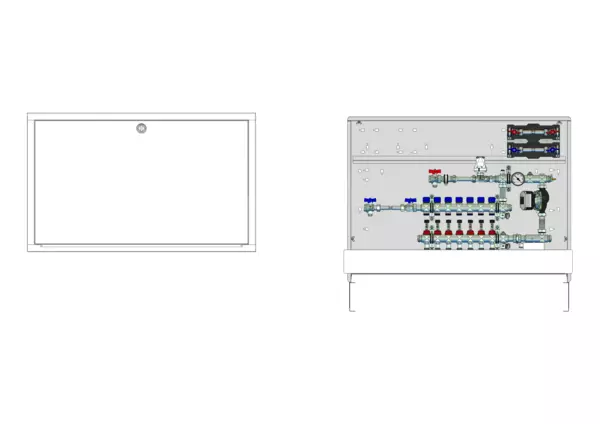 strawa Comfort Regelstation FBR-63-H-W2-WMZ-C69 7 Hkr.,BxHxT: 1050x775x122 mm, Festwert 20-50°C mit Pumpe, horz. AG m. WMZ, Verteiler mit DFA 0-3 l/min + THV M30x1,5, Wasserzählerstr. TW kalt u. warm, Comfort-UP-Schrank m. Frontbl. RAL 9016