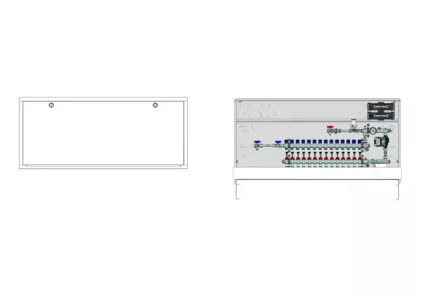 strawa Comfort Regelstation FBR-63-H-W2-WMZ-C69 14 Hkr.,BxHxT: 1500x775x122 mm, Festwert 20-50°C mit Pumpe, horz. AG m. WMZ, Verteiler mit DFA 0-3 l/min + THV M30x1,5, Wasserzählerstr. TW kalt u. warm, Comfort-UP-Schrank m. Frontbl. RAL 9016