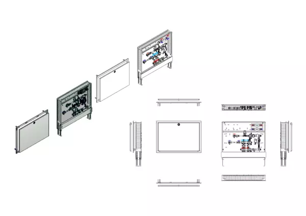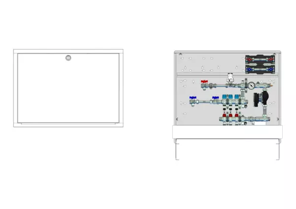 strawa Comfort Regelstation FBR-18-H-W2-WMZ-C69 3 Hkr.,BxHxT: 900x775x122 mm, Festwert 20-50°C mit Pumpe, horz. AG m. WMZ, Verteiler m. DFA min/max + THV für EGO, Wasserzählerstr. TW kalt u. warm, Comfort-UP-Schrank m. Frontbl. RAL 9016