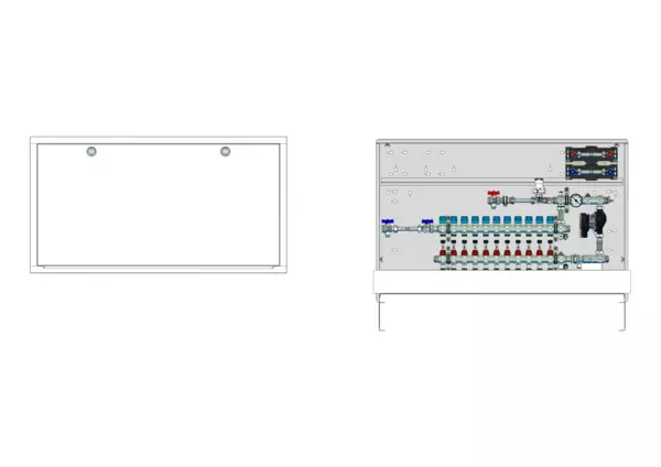 strawa Comfort Regelstation FBR-18-H-W2-WMZ-C69 11 Hkr.,BxHxT: 1200x775x122 mm, Festwert 20-50°C mit Pumpe, horz. AG m. WMZ, Verteiler m. DFA min/max + THV für EGO, Wasserzählerstr. TW kalt u. warm, Comfort-UP-Schrank m. Frontbl. RAL 9016