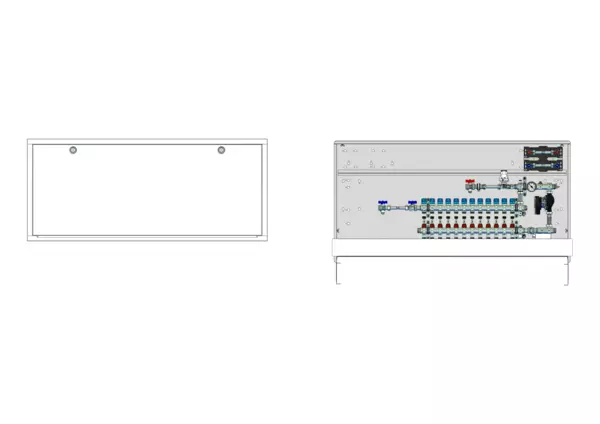 strawa Comfort Regelstation FBR-18-H-W2-WMZ-C69 12 Hkr.,BxHxT: 1500x775x122 mm, Festwert 20-50°C mit Pumpe, horz. AG m. WMZ, Verteiler m. DFA min/max + THV für EGO, Wasserzählerstr. TW kalt u. warm, Comfort-UP-Schrank m. Frontbl. RAL 9016