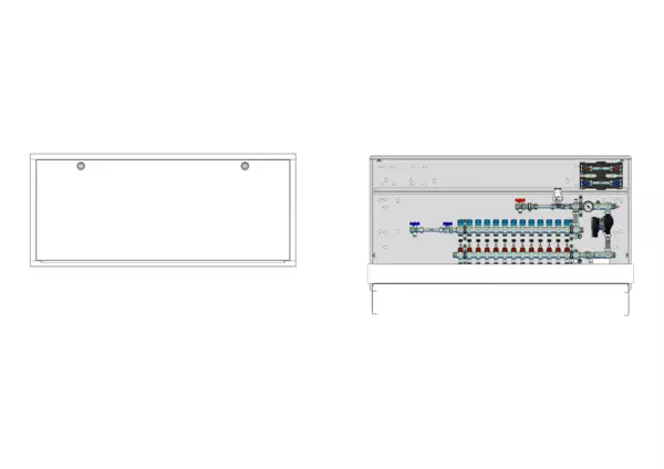 strawa Comfort Regelstation FBR-18-H-W2-WMZ-C69 13 Hkr.,BxHxT: 1500x775x122 mm, Festwert 20-50°C mit Pumpe, horz. AG m. WMZ, Verteiler m. DFA min/max + THV für EGO, Wasserzählerstr. TW kalt u. warm, Comfort-UP-Schrank m. Frontbl. RAL 9016