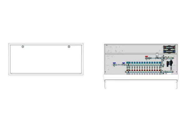strawa Comfort Regelstation FBR-18-H-W2-WMZ-C69 14 Hkr.,BxHxT: 1500x775x122 mm, Festwert 20-50°C mit Pumpe, horz. AG m. WMZ, Verteiler m. DFA min/max + THV für EGO, Wasserzählerstr. TW kalt u. warm, Comfort-UP-Schrank m. Frontbl. RAL 9016