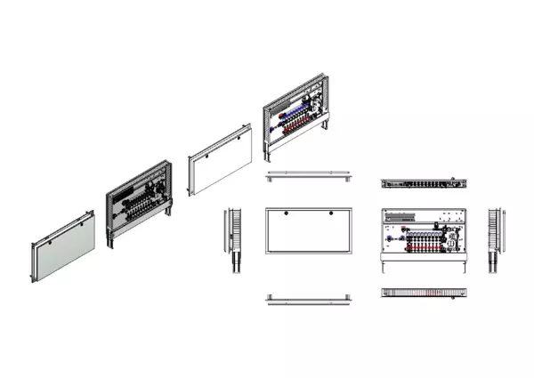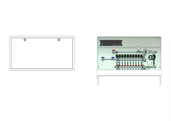 strawa Comfort Regelstation FBR-63-H-WMZ-C69-E 10 Hkr.,BxHxT: 1200x775x122 mm, Festwert 20-50°C mit Pumpe, horz. AG m. WMZ, Verteiler mit DFA 0-3 l/min + THV M30x1,5, vorm. Stellantr. + Klemml. m. Vorverdraht., Comfort-UP-Schrank m. Frontbl. RAL 9016