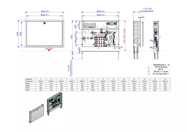 strawa Comfort Regelstation FBR-63-H-W1-WMZ-C69-E 13 Hkr.,BxHxT: 1500 x 775 x 122 mm, Festwert 20-50°C m. Pumpe, hor. AG m. WMZ, Verteil m. DFA 0-3 l/min+THV M30x1,5, vorm. Stellantr.+Klemml. m. Vorverdr, WZ-Strecke TW kalt, CUP-Schrank m. Frontbl. RAL9016
