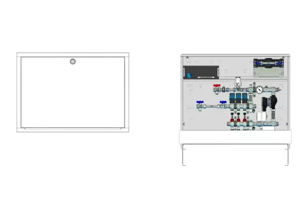 strawa Comfort Regelstation FBR-18-H-W1-WMZ-C69-EGO 3 Hkr.,BxHxT: 900 x 775 x 122 mm, Festwert 20-50°C m. Pumpe, hor. AG m. WMZ, Verteil m. DFA min/max+THV f. EGO, vorm. EGO-Regel.+Klemml. m. Vorverdr., WZ-Strecke TW kalt, CUP-Schrank m. Frontbl. RAL9016
