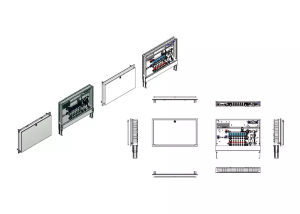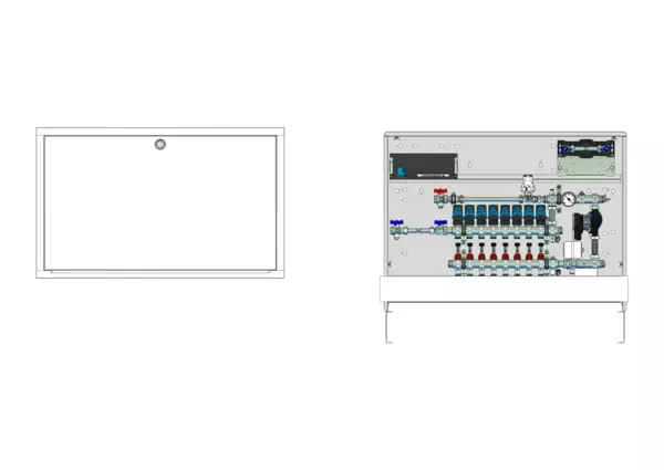 strawa Comfort Regelstation FBR-18-H-W1-WMZ-C69-EGO 8 Hkr.,BxHxT: 1050 x 775 x 122 mm, Festwert 20-50°C m. Pumpe, hor. AG m. WMZ, Verteil m. DFA min/max+THV f. EGO, vorm. EGO-Regel.+Klemml. m. Vorverdr., WZ-Strecke TW kalt, CUP-Schrank m. Frontbl. RAL9016