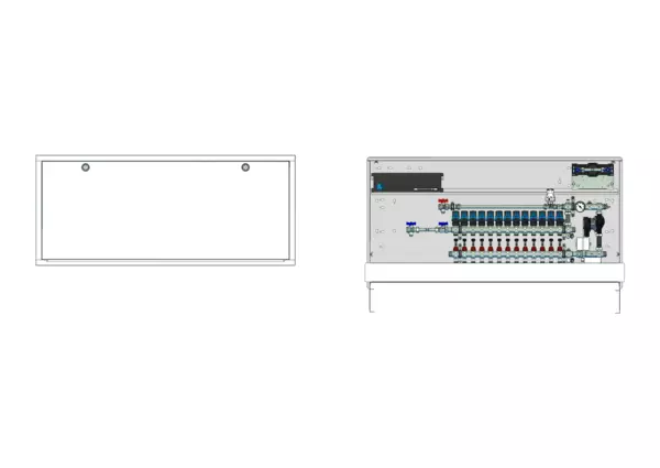strawa Comfort Regelstation FBR-18-H-W1-WMZ-C69-EGO 13 Hkr.,BxHxT: 1500 x 775 x 122 mm, Festwert 20-50°C m. Pumpe, hor. AG m. WMZ, Verteil m. DFA min/max+THV f. EGO, vorm. EGO-Regel.+Klemml. m. Vorverdr., WZ-Strecke TW kalt, CUP-Schrank m. Frontbl. RAL9016