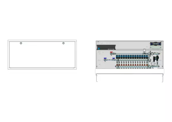 strawa Comfort Regelstation FBR-18-H-W1-WMZ-C69-EGO 14 Hkr.,BxHxT: 1500x775x122 mm, Festwert 20-50°C m. Pumpe, hor. AG m. WMZ, Verteil m. DFA min/max+THV f. EGO, vorm. EGO-Regel.+Klemml. m. Vorverdr., WZ-Strecke TW kalt, CUP-Schrank m. Frontbl. RAL9016