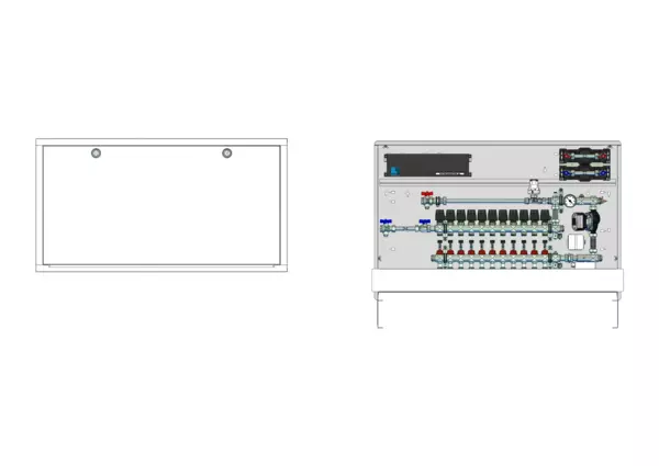 strawa Comfort Regelstation FBR-63-H-W2-WMZ-C69-E 11 Hkr.,BxHxT: 1200 x 775 x 122 mm, Festwert 20-50°C m. Pump, hor. AG m. WMZ, Verteil m. DFA 0-3 l/min+THV M30x1,5, vorm. Stellantr.+Klemml. m. Vorverd, WZ-Strecke TW kalt+warm, CUP-Schrank Frontbl. RAL9016