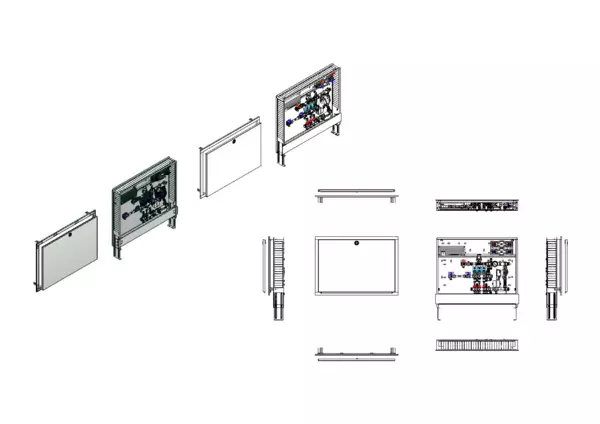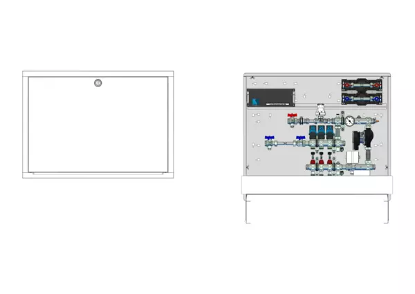 strawa Comfort Regelstation FBR-18-H-W2-WMZ-C69-EGO 3 Hkr.,BxHxT: 900 x 775 x 122 mm, Festwert 20-50°C m. Pump, hor. AG m. WMZ, Verteil m. DFA min/max+THV f. EGO, vorm. EGO+Klemml. m. Vorverdr., WZ-Strecke TW kalt+warm, CUP-Schrank m. Frontbl. RAL9016