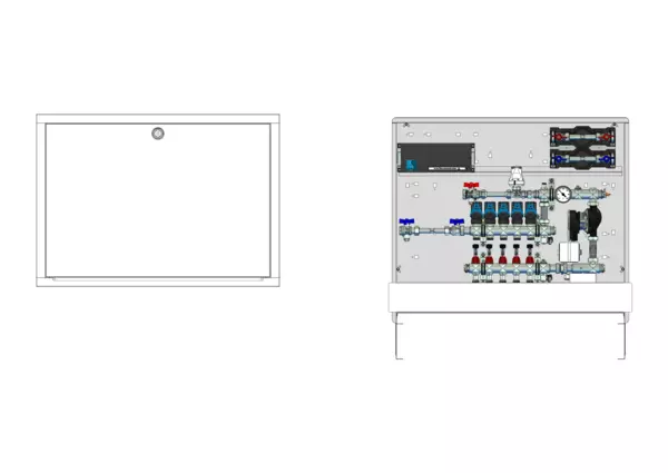 strawa Comfort Regelstation FBR-18-H-W2-WMZ-C69-EGO 5 Hkr.,BxHxT: 900 x 775 x 122 mm, Festwert 20-50°C m. Pump, hor. AG m. WMZ, Verteil m. DFA min/max+THV f. EGO, vorm. EGO+Klemml. m. Vorverdr., WZ-Strecke TW kalt+warm, CUP-Schrank m. Frontbl. RAL9016