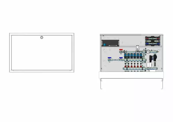 strawa Comfort Regelstation FBR-18-H-W2-WMZ-C69-EGO 6 Hkr.,BxHxT: 1050 x 775 x 122 mm, Festwert 20-50°C m. Pump, hor. AG m. WMZ, Verteil m. DFA min/max+THV f. EGO, vorm. EGO+Klemml. m. Vorverdr., WZ-Strecke TW kalt+warm, CUP-Schrank m. Frontbl. RAL9016